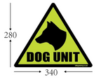This Triangle Dog Unit Magnet Sign is the perfect addition to any car or vehicle. Made from high-quality vinyl material and featuring a striking black and Florent green color scheme, this sign is sure to catch the eye of any passerby. Measuring 340mm in height and 280mm in width, it is a great size to display your love for your furry friends. The sign also features reflectors and is finished with a high gloss texture, making it a durable and long-lasting addition to your vehicle. The Battenberg theme adds a touch of personality to the sign, while the original and authentic design ensures that you are getting a quality product. This Triangle K9 magnetic sign is a must-have for security vehicles carrying dogs.
